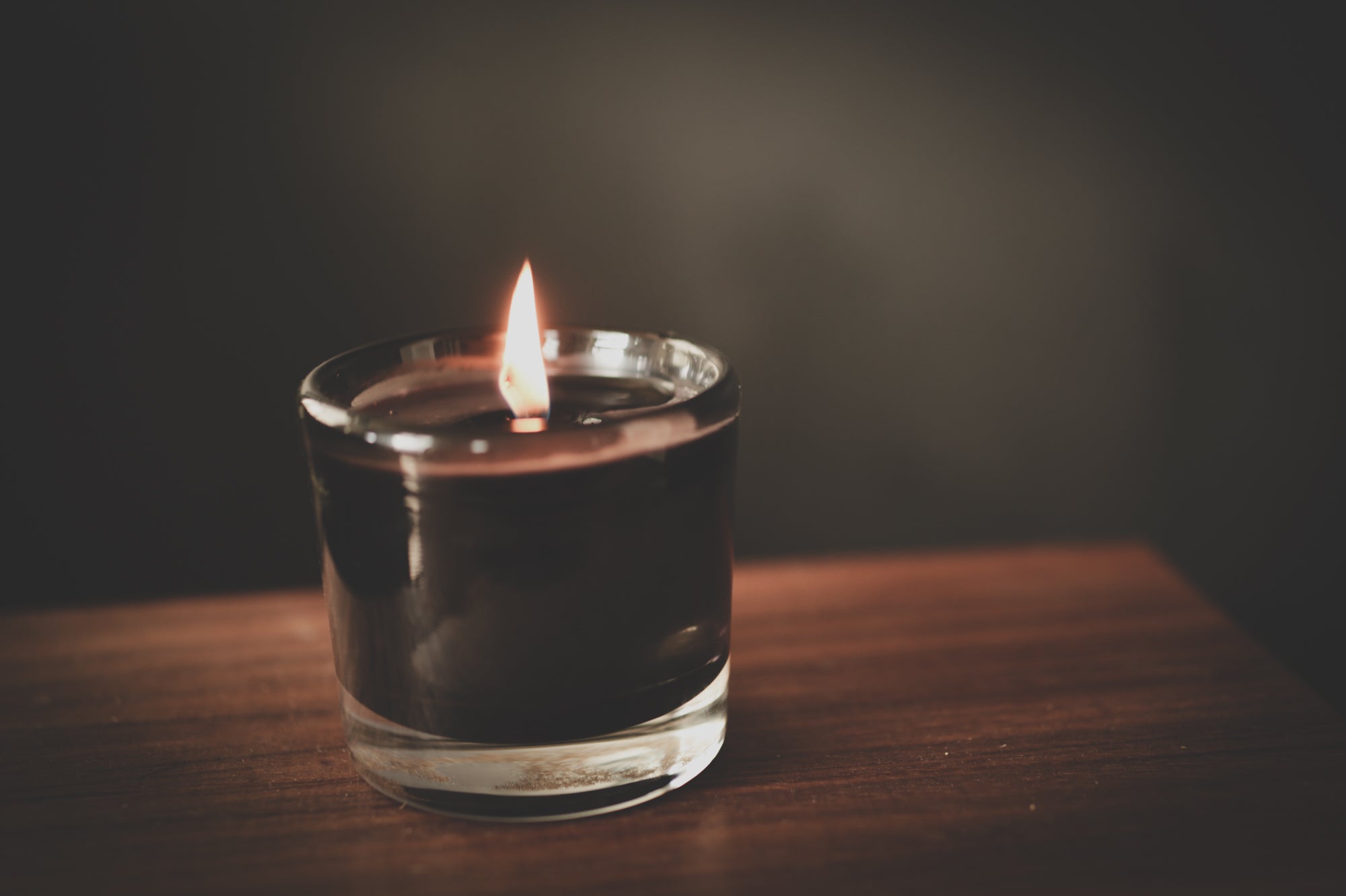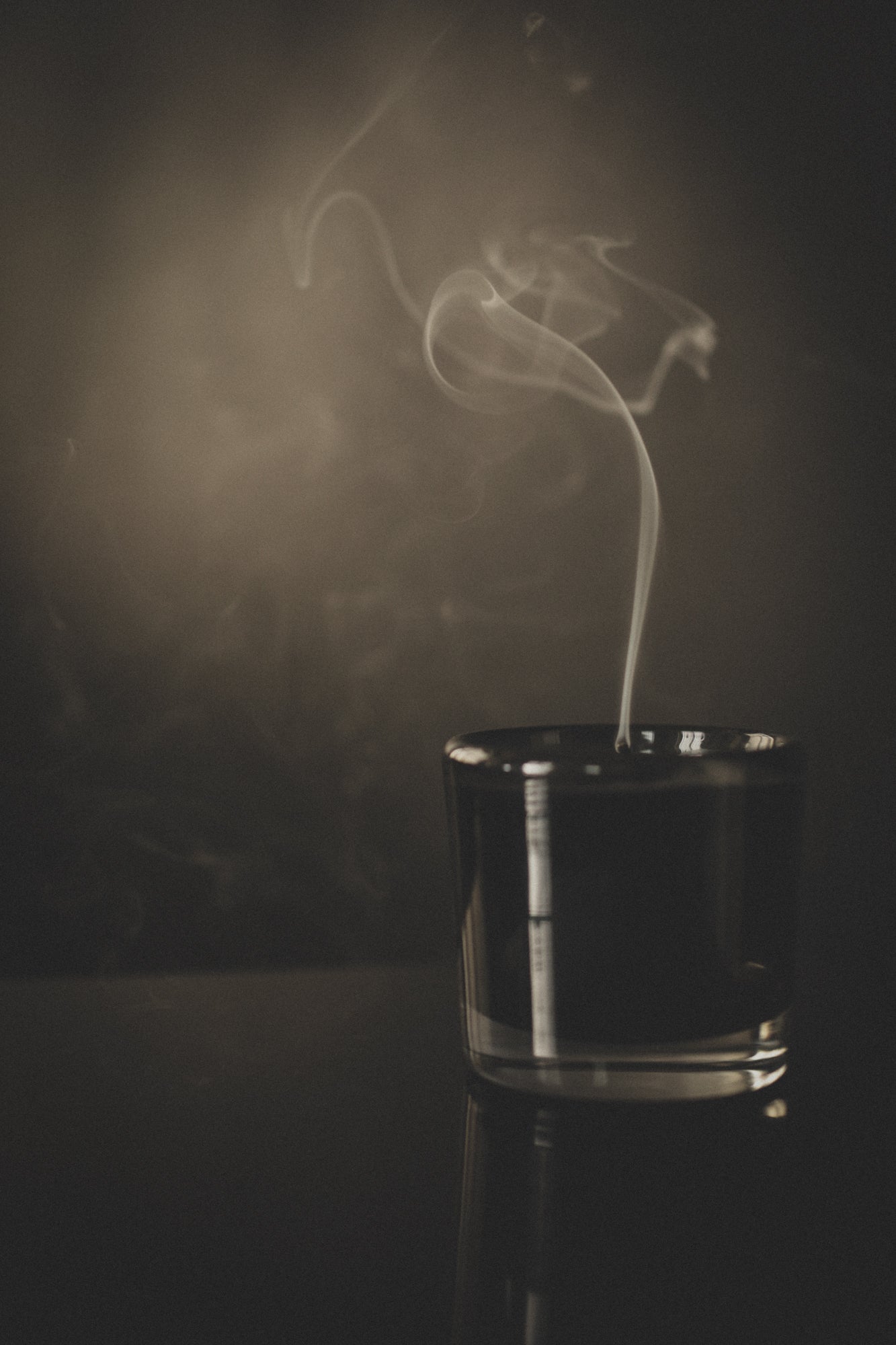 - Natural vegetable wax candle in smoke grey custom blown glassware.
